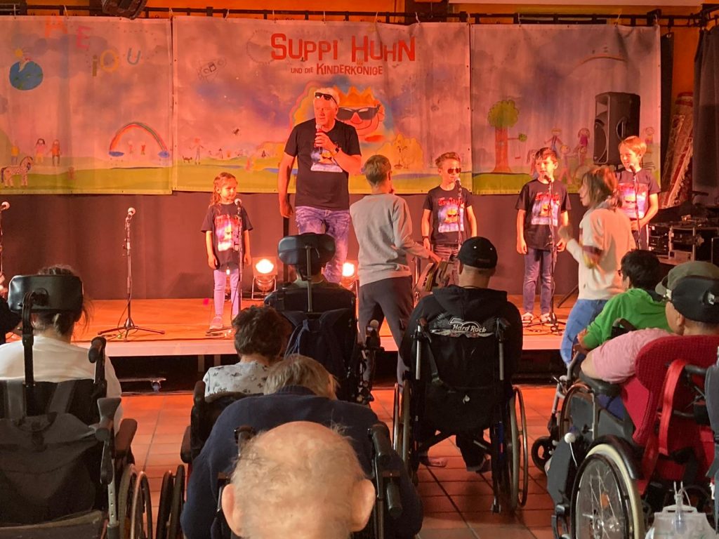 Ein Highlight im diesjährigen Veranstaltungskalender war der Auftritt von Suppi Huhn. Über 100 Bewohner des Fliednerdorfes kamen zum Mitmachkonzert von „Suppi Huhn und die Königskinder“. Im Mittelpunkt der Veranstaltung standen Themen wie Achtsamkeit, Freundschaften, Mut und Integration. Die Bewohner bedankten sich mit langandauerndem Applaus.