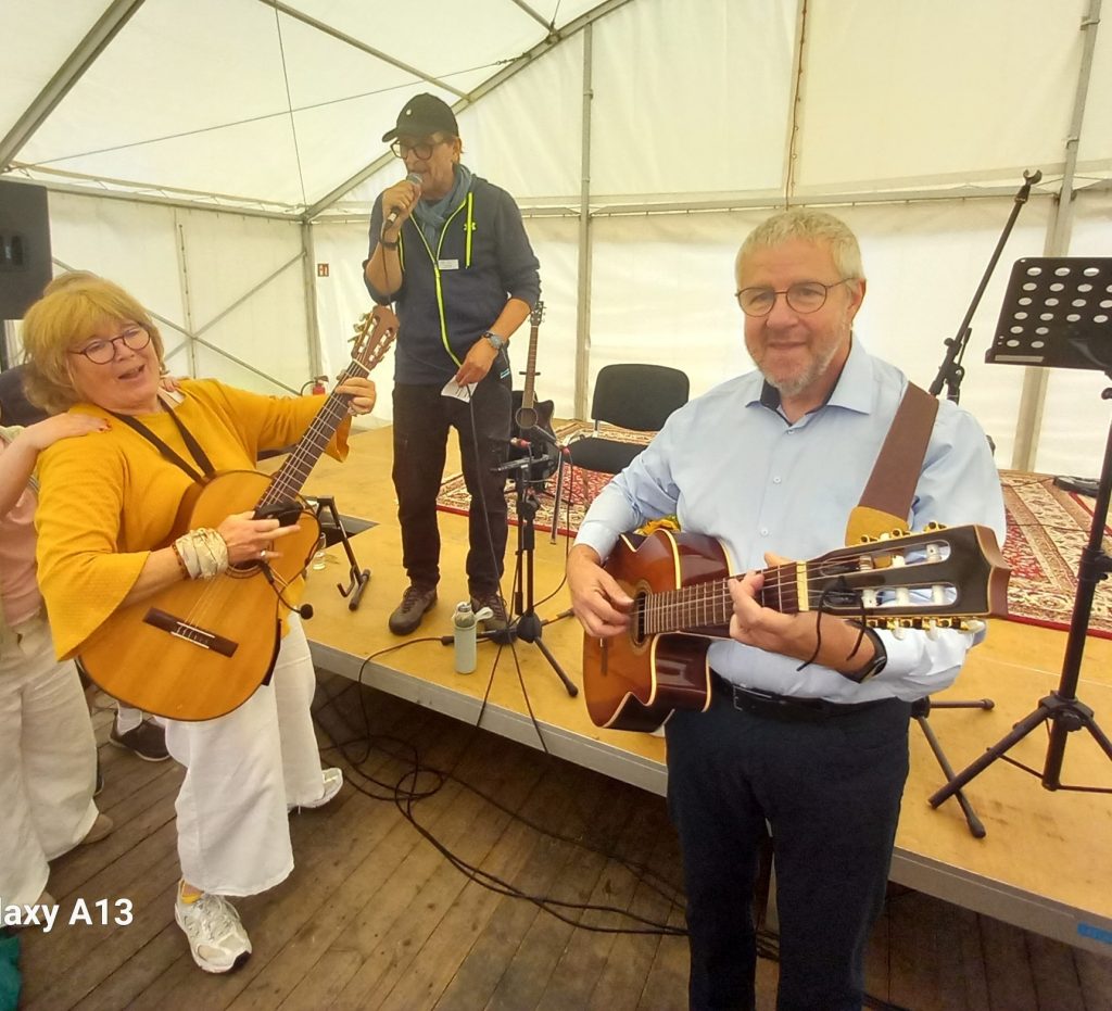 Wie in jedem Jahr war das diesjährige Sommerfest ein großer Publikumsmagnet. An zahlreichen Ständen wurde nicht nur Kulinarisches geboten, sondern auch Kunsthandwerkliches. Auch unser Stand fand großes Interesse. Wir konnten zahlreiche Spenden entgegennehmen. Auch musikalische Darbietungen fanden großen Anklang, unter anderem mit unserer Hanna und dem Vorstandsvorsitzenden Frank Eibisch, der Hanna mit der Gitarre begleitete (Foto). Beide haben inzwischen auch ihren nächstjährigen Auftritt angekündigt.